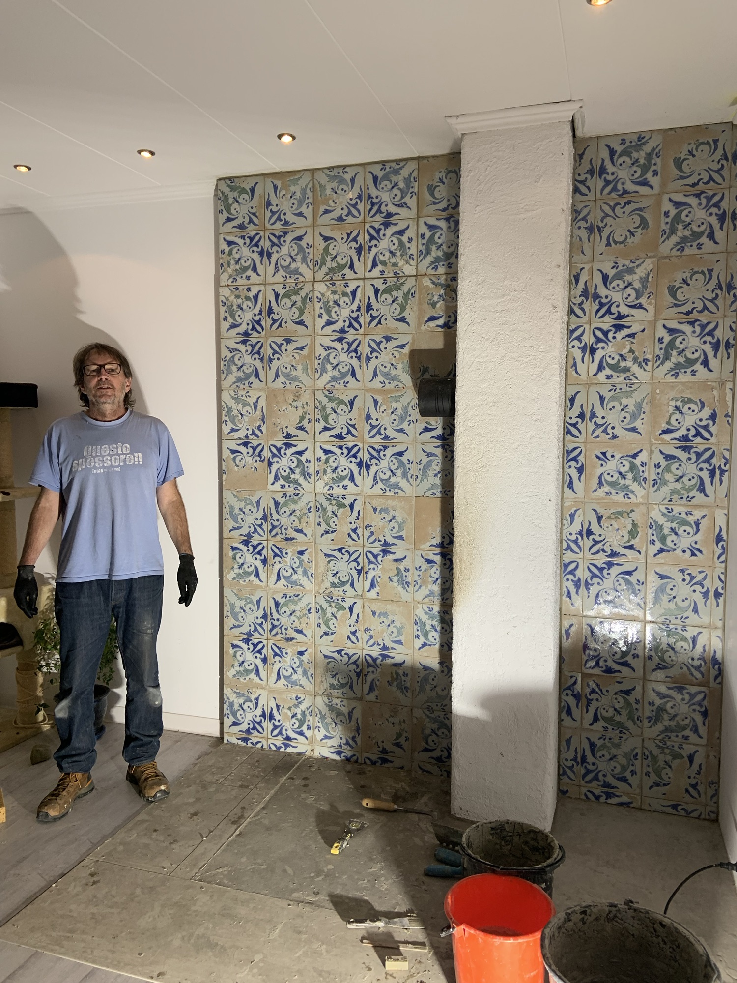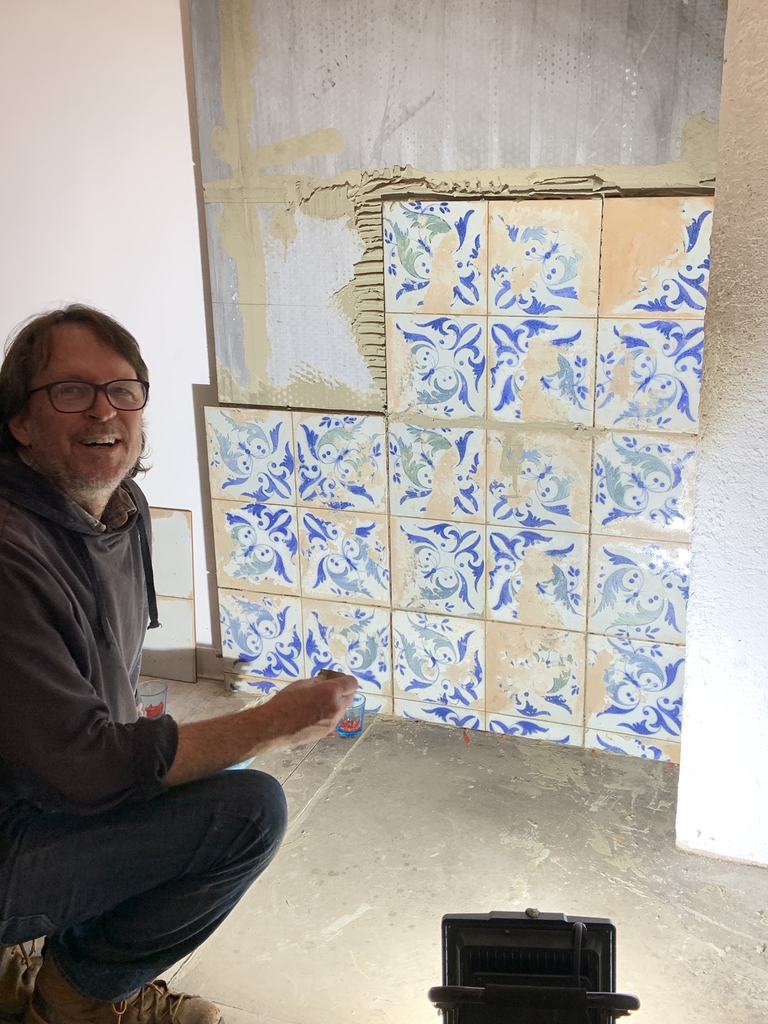 Due to new regulation, getting the annual certificate from the local authority to operate the wood stove at home required installing a new 5cm thick calcium silica fire board protecting the wall from the stove heat. We decided to install the fireboard and cover it with mosaic tiles. Then came the decision, which tiles?