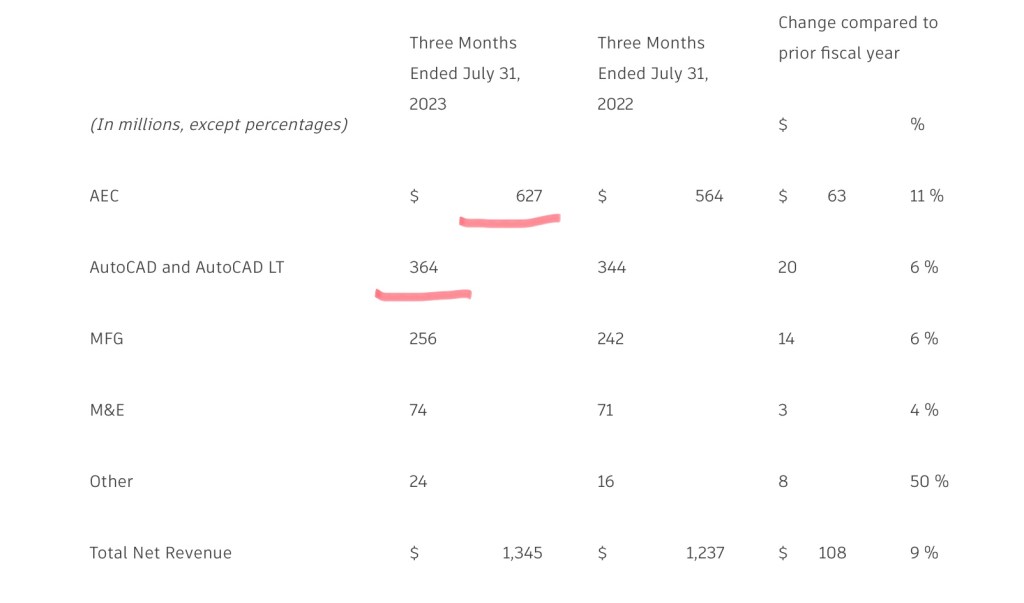 I think there is something to think about in terms of business and market size, some dots to connect. AutoCAD revenue is 60% of Autodesk AEC revenue. This, after more than 20 years of heavily marketed AEC software focused on MODELING. While AutoCAD is for TECHNICAL DRAWING.