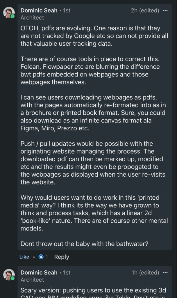 Simon’s point 3 is right (see screenshot below). I just add to it. Keeping drawing in its centuries old form of expression only, or dreaming of getting rid of drawings, are missing the point and all of the opportunity. See the FACTS, and 5 FUNCTIONS, sections in this intro: