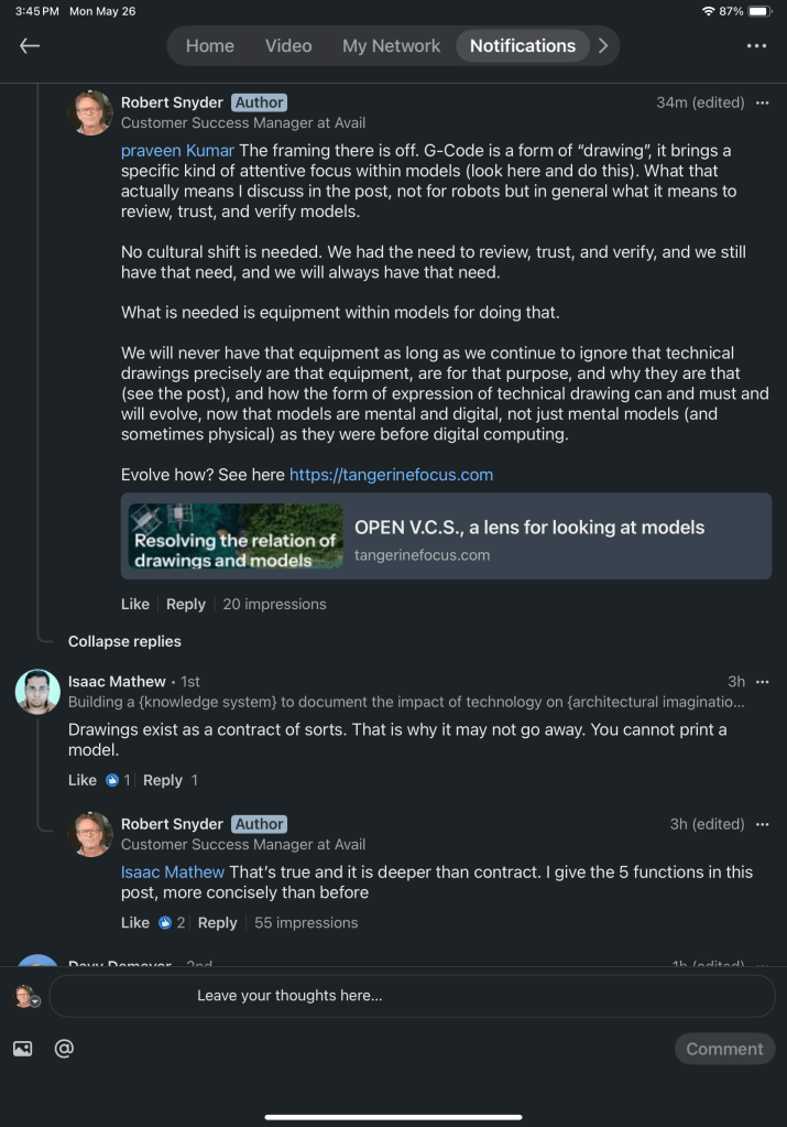 Other than rhetoric about their elimination, and current automation, I never heard anyone talk about what drawings are, not in internal discussions, not in marketing communications, not in industry articles, not in conference presentations. Not a word ever said. Calling them ‘deliverables’ doesn’t count. You can deliver milk, and call milk a deliverable. But that doesn’t mean anything.